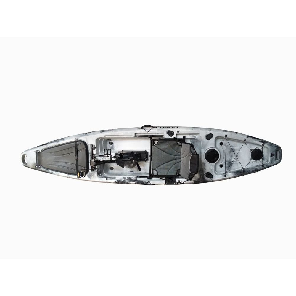 Το συμπαγές ποδηλατικό σύστημα αλουμινίου μαζί με τηλεχειριστήριο για να στρίβει το σκάφος, σας κάνουν το ψάρεμα σας ή την βόλτα σας διασκεδαστική και επιτρέπουν να αναπτύσσετε μεγάλες ταχύτητες χωρίς να κουράζεστε.