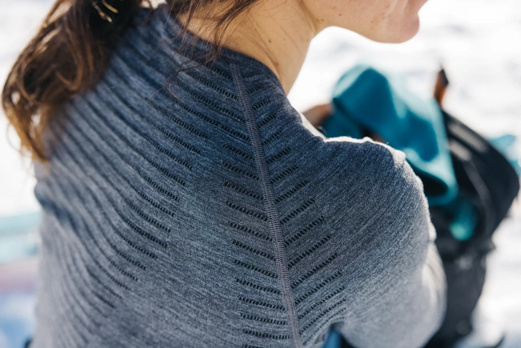 Είμαστε στη 2η μέρα του ski touring. Η μακρυμάνικη μπλούζα Drynamic Warm κρατά τις υποσχέσεις της όσον αφορά την άνεση και την απόδοση σε χαμηλές θερμοκρασίες. Το μείγμα από συνθετικές ίνες και μαλλί Merino βελτιστοποιεί την ρύθμιση της θερμοκρασίας και την απομάκρυνση υγρασίας. Αυτή η τεχνική μπλούζα στεγνώνει γρήγορα και αποτρέπει τις δυσάρεστες οσμές. Φοριέται εύκολα κάθε μέρα, ενώ διαθέτει κατασκευή χωρίς ραφή έτσι ώστε να αποφευχθούν οι ερεθισμοί από την τριβή. Ανεξάρτητα από τον ρυθμό μας, η προσαρμοσμένη πυκνότητα πλέγματος σε στρατηγικά σημεία εξασφαλίζει τέλεια ισορροπία μεταξύ ζεστασιάς και διαπνοής.