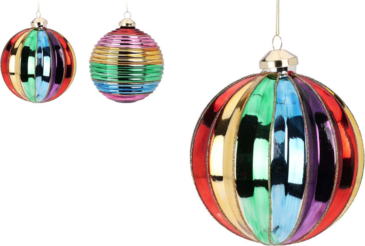 JK Home Décor - Μπάλα Μulti Γυάλινη 12cm 2Σχδ