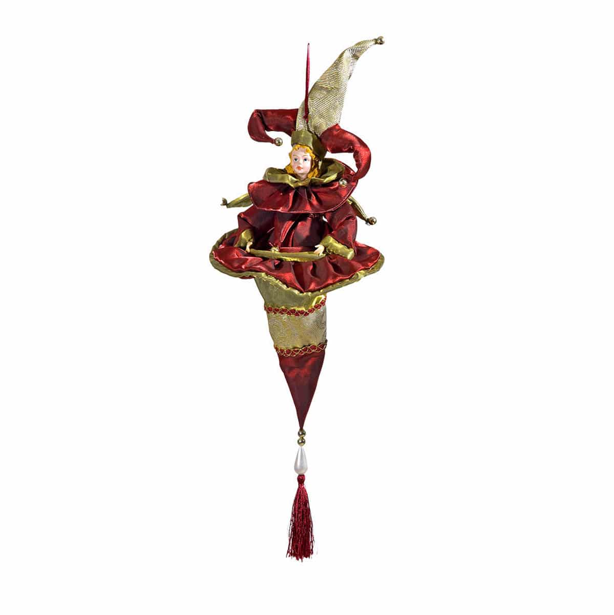Αρλεκίνος διακοσμητικός υφασμάτινος σε μπορντό και χρυσούς τόνους, για το χριστουγεννιάτικο ντεκόρ του Σπίτιού. Ύψος:55 εκ. - JΚ Home Décor - Αρλεκίνος Κρεμαστός 55cm