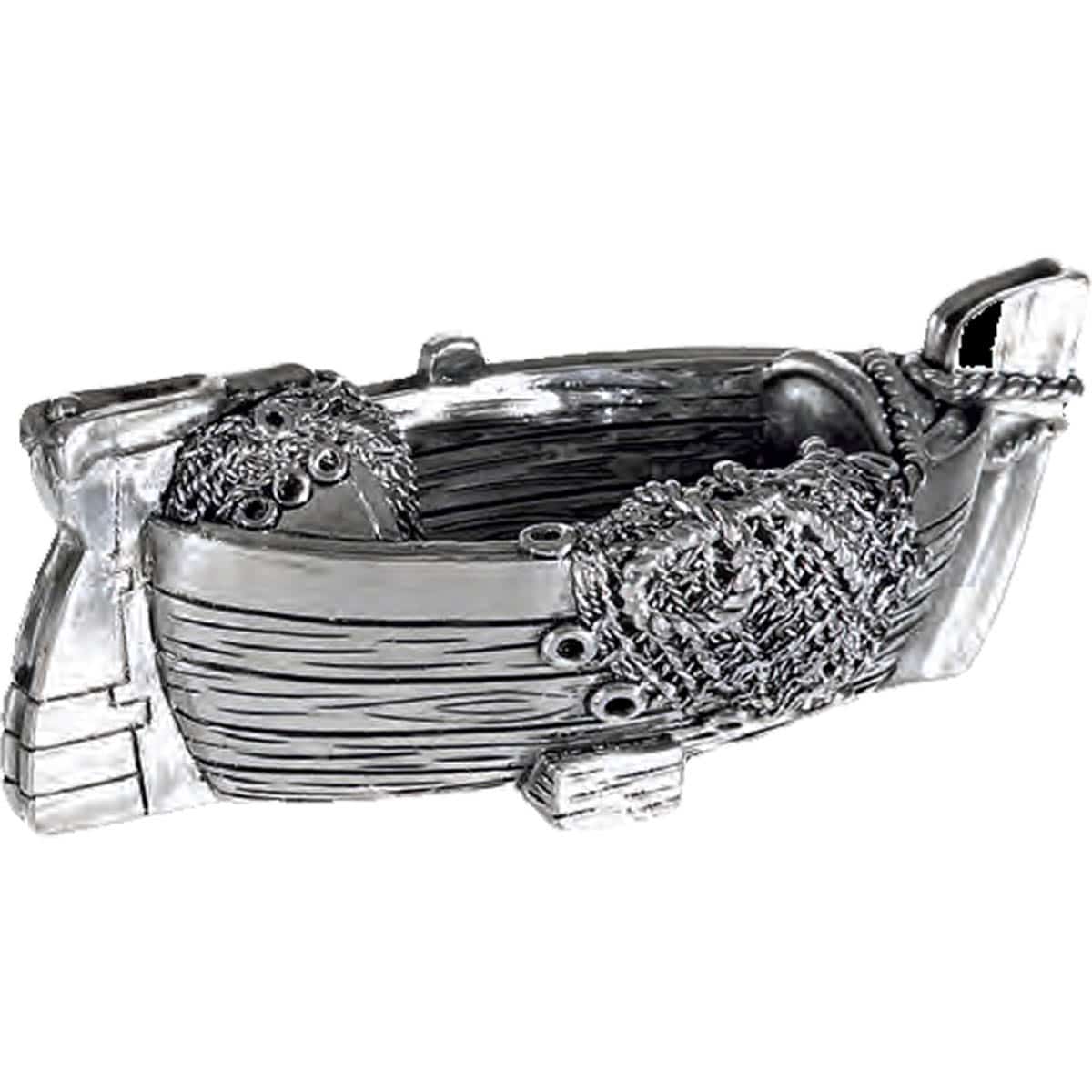 JΚ Home Décor - Βάρκα Ρεζίν - Διακοσμητική βαρκούλα με δίχτυα, από ρητίνη, σε ασημί χρώμα.