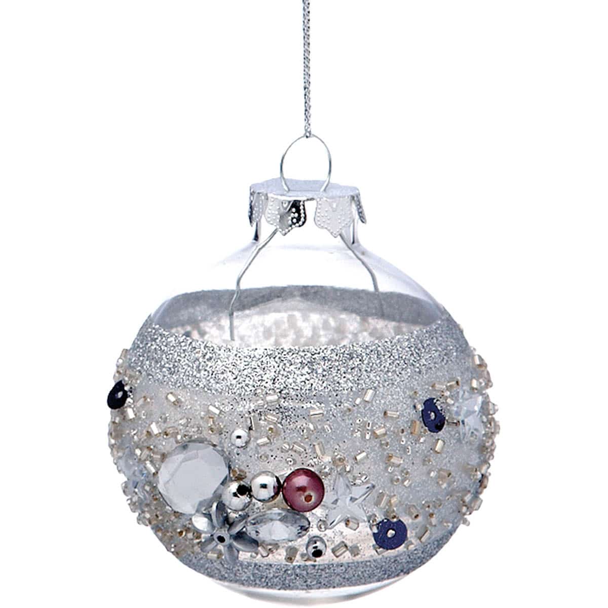 Γυάλινη χριστουγεννιάτικη διάφανη μπάλα δέντρου, με γκλίτερ σχέδιο και χρωματιστές λεπτομέρειες στην διακόσμηση. Συσκευασία των τριών. Φ7εκ. - JΚ Home Décor - Μπάλα Γυάλινη Διάφανη 7cm S/3