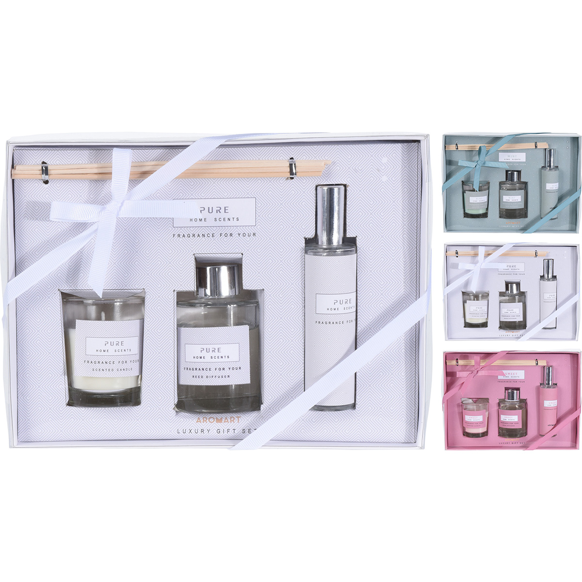 Το σετ περιέχει 1 κεράκι, 1 διαχειτήρα των 60ml και 1 spray δωματείου για ανανέωση της φρεσκάδας στο χώρο. Τρια διαφορετικά αρώματα.