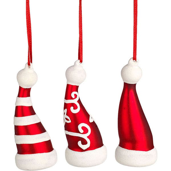 JΚ Home Décor - Στολίδι Καπέλο Γυάλινο S/3 11cm - Τρία πανέμορφα σχέδια από γυαλί του κλασικού καπέλου του Άγιου Βασίλη για να κρεμάσετε στο χριστουγεννιάτικο δεντράκι σας!