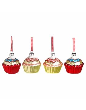 Δώστε χρώμα στο χριστουγεννιάτικο δέντρο σας στολιζοντας το με λαχταριστά, πολύχρωμα κεκάκια. Θα είναι το πιο γλυκό δέντρο στον κόσμο! - JΚ Home Décor - Στολίδι Cupcake Γυάλινο S/10 5.5cm