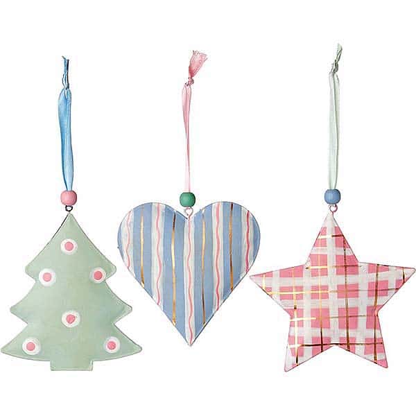 Χριστουγεννιάτικα διακοσμητικά στολίδια, με σχέδιο αστέρι, δέντρο και καρδιά, σε ΣΕΤ των 3. ΧΡΙΣΤΟΥΓΕΝΝΙΑΤΙΚΑ ΔΙΑΚΟΣΜΗΤΙΚΑ S/3 10CΜ