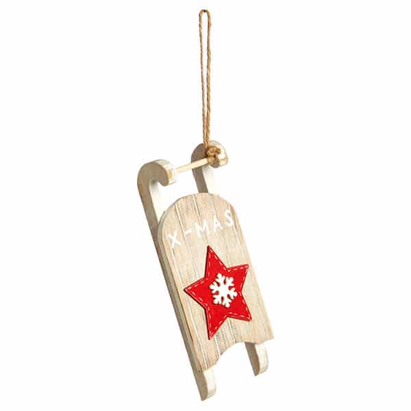 JΚ Home Décor - Έλκηθρο Ξύλινο Xmas 7x17cm - Έλκηθρο ξύλινο κρεμαστό, που γράφει XMAS και έχει ένα Κόκκινο αστεράκι με μια λευκή Χιονονιφάδα στο κέντρο.