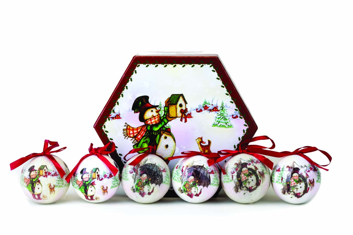 JK Home Décor - Μπάλα Οικολογική Χιονάνθρωπος με Κουτί 8cm S/14