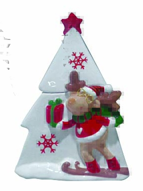 JK Home Décor - Μπισκοτιέρα Δέντρο-Τάρανδος Λευκή 18.5x14x24cm