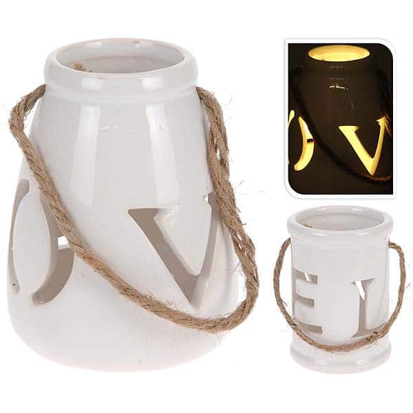 JΚ Home Décor - Φανάρι Κεραμικό Λευκό Love LED 2Σχέδια 7x10cm