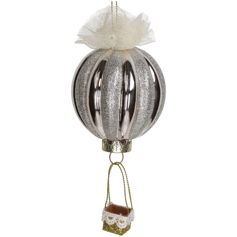 JΚ Home Décor - Μπάλα Γυάλινη Αερόστατο Ασημί 16cm