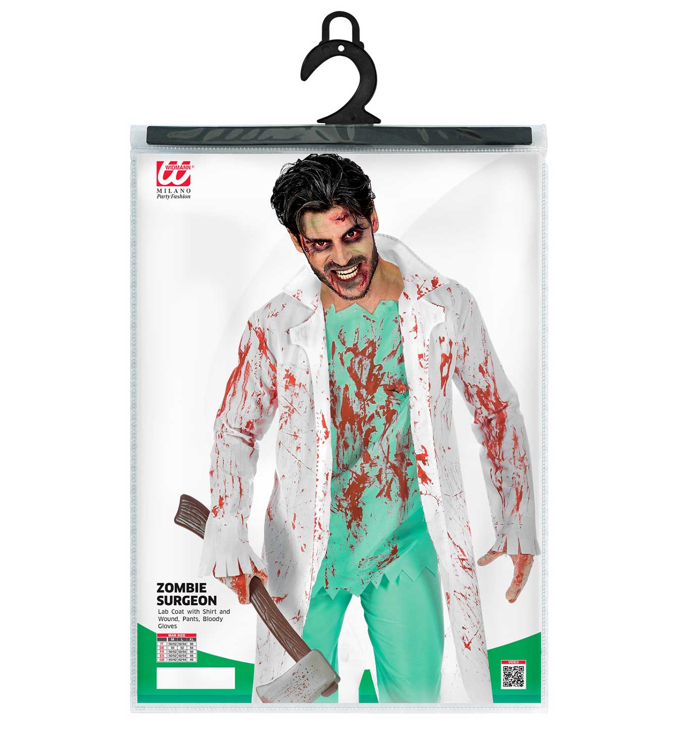 • Περιλαμβάνει: Ματωμένη Ποδιά Εργαστηρίου με ενσωματωμένη Μπλούζα και 1 πληγή στο Στήθος, Παντελόνι, Ματωμένα Γάντια