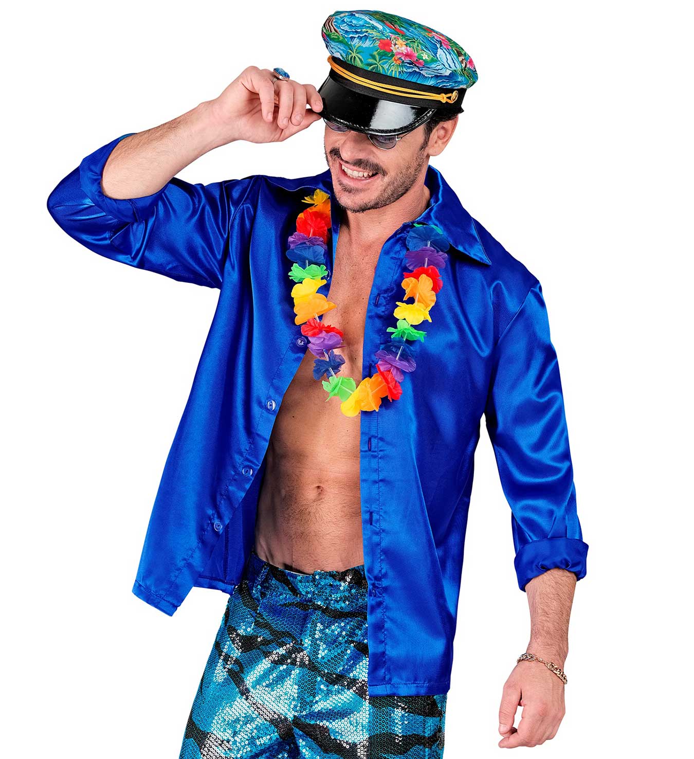 Αποκριάτικο Satin Πουκάμισο 70s Μπλέ 22023