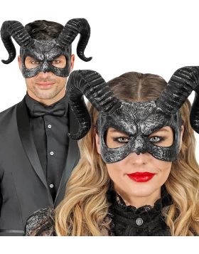 Άσπρη Μάσκα Προσώπου Halloween με Κέρατα Deluxe 319247