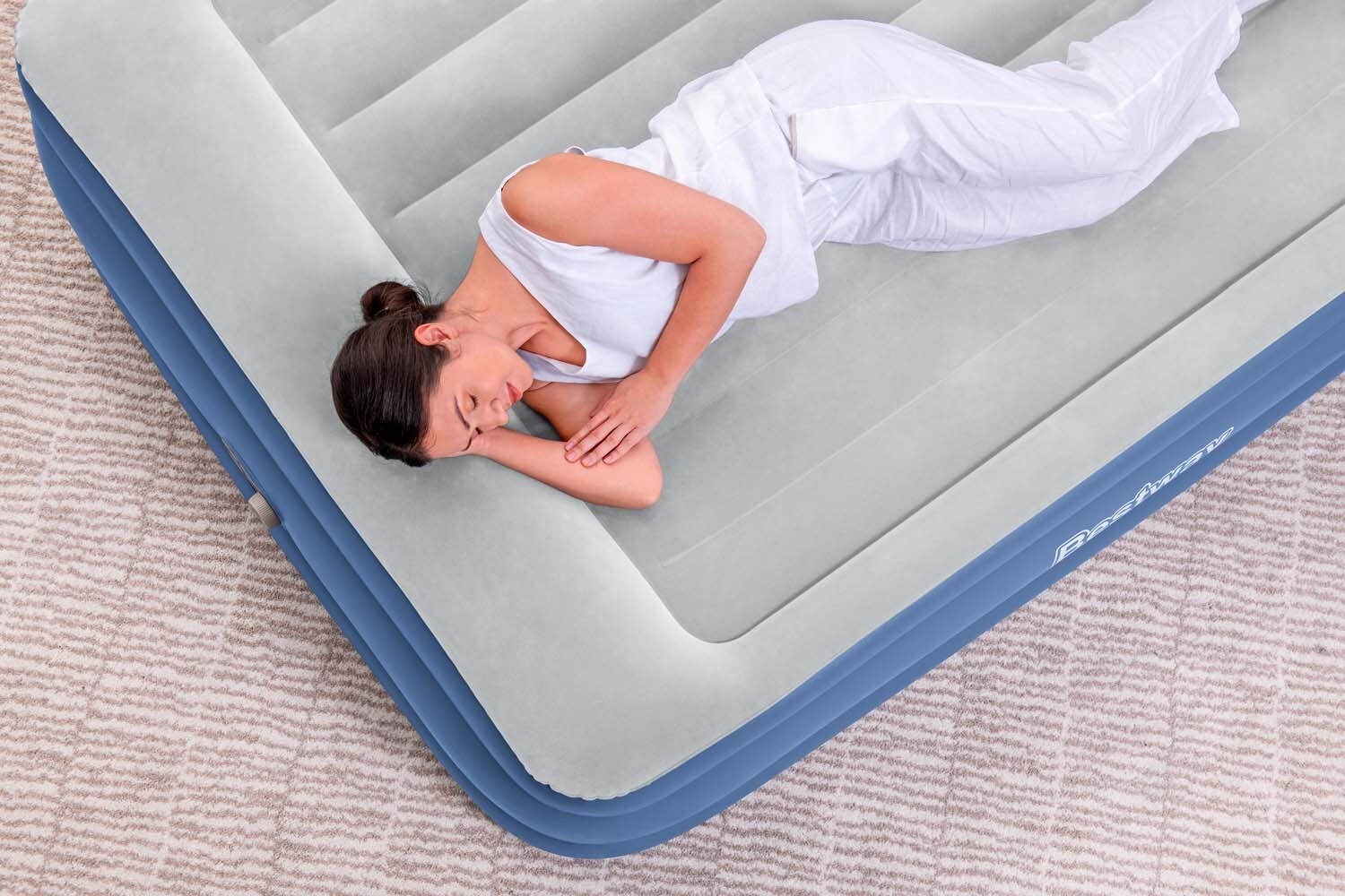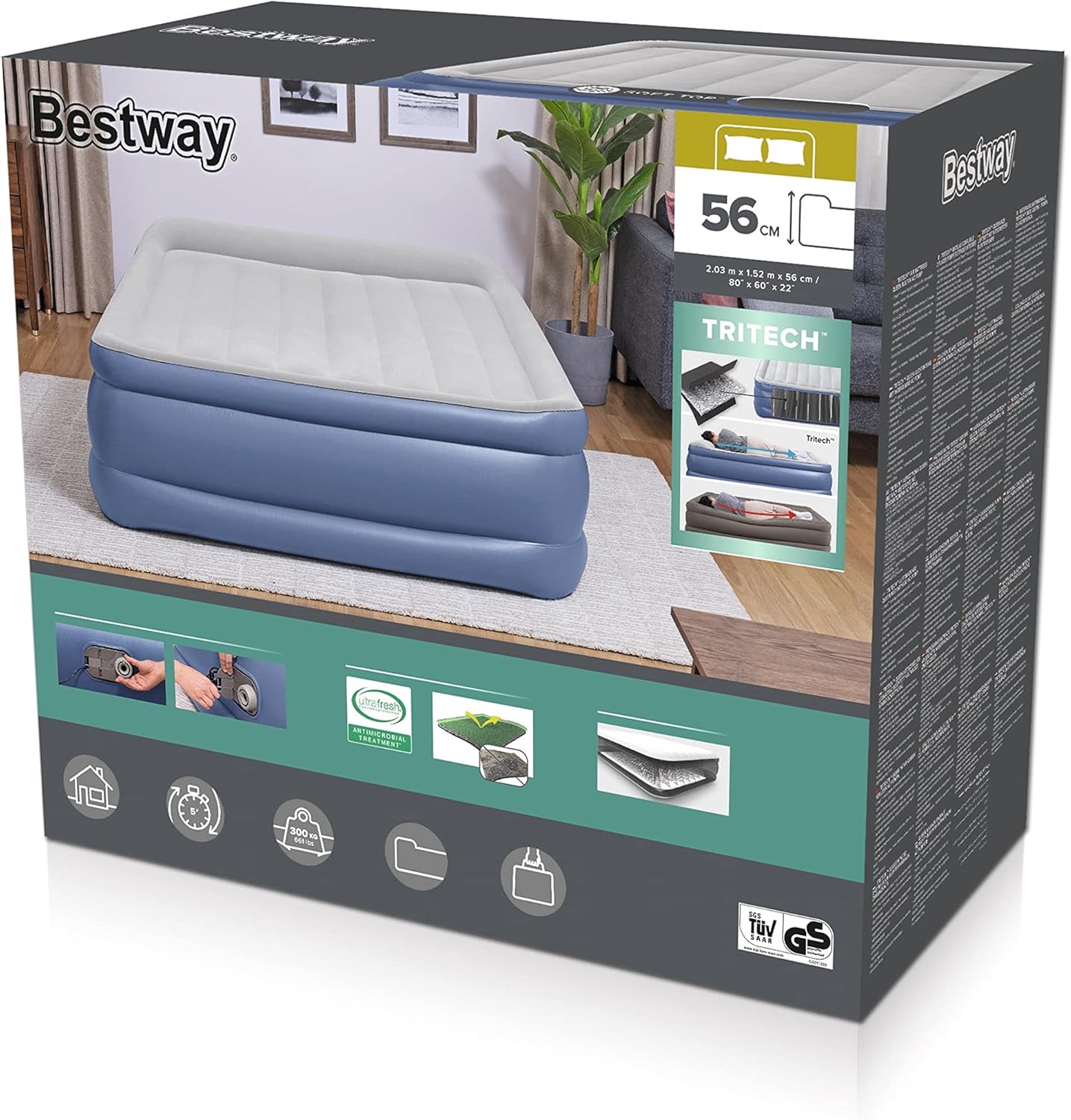 Ξυπνήστε ξεκούραστοι και ανανεωμένοι με το φουσκωτό στρώμα Bestway® Quenn Tritech™! Αυτό το ψηλό στρώμα ύψους 51 cm, υπόσχεται δύναμη, ανθεκτικότητα και άνεση όλη τη νύχτα. Το συμπαγές του μέγεθος και η ενσωματωμένη αντλία αέρα (το φουσκώνει σε 5 λεπτά) το καθιστούν γρήγορο και βολικό για χρήση όποτε το χρειάζεστε. Αυτό το φουσκωτό στρώμα είναι ιδανικό για χρήση ως επιπλέον κρεβάτι όταν δεχθείτε επισκέπτες στο σπίτι. Με άνετη επιφάνεια ύπνου και στιβαρή κατασκευή, οι καλεσμένοι σας θα απολαύσουν έναν υπέροχο βραδινό ύπνο. Κατασκευασμένο από το υλικό Tritech προσφέρει αντοχή, σταθερότητα, με ελάχιστες απώλειες αέρα, ενώ παράλληλα επιτρέπει στο στρώμα να διατηρεί το ίδιο σχήμα όσες φορές κι αν το φουσκώσετε ή ξεφουσκώσετε. Αυτό το ανθεκτικό υλικό μπορεί να αντέξει όλο το βάρος και να υποστηρίξει την κίνηση που συνοδεύει τον βραδινό ύπνο. Περιλαμβάνεται θήκη για να μεταφέρετε όπου το χρειάζεστε και να το αποθηκεύετε εύκολα. Για την αντιμετώπιση τυχόν απρόβλεπτου τρυπήματος, παρέχεται επίσης ένα επιπλέον ισχυρό αυτοκόλλητο επισκευής.