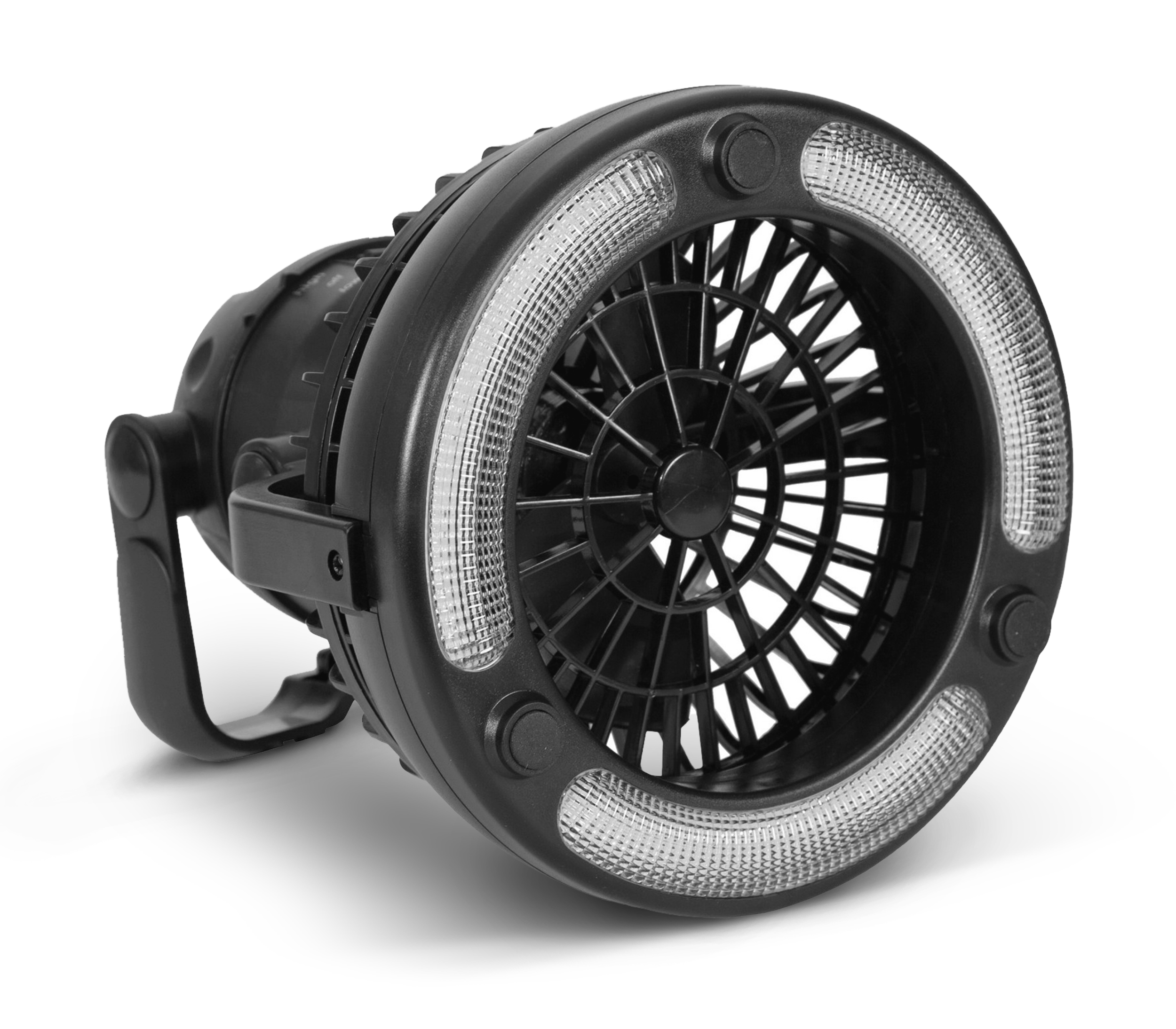 Escape Ανεμιστήρας οροφής ή δαπέδου σκηνών και με διάχυτο φωτισμό από 18 Led - 40 Lumens Λειτουργεί με μπαταρίες: 2xD (Δέν περιλαμβάνονται). Βάρος +/-: 570 gr