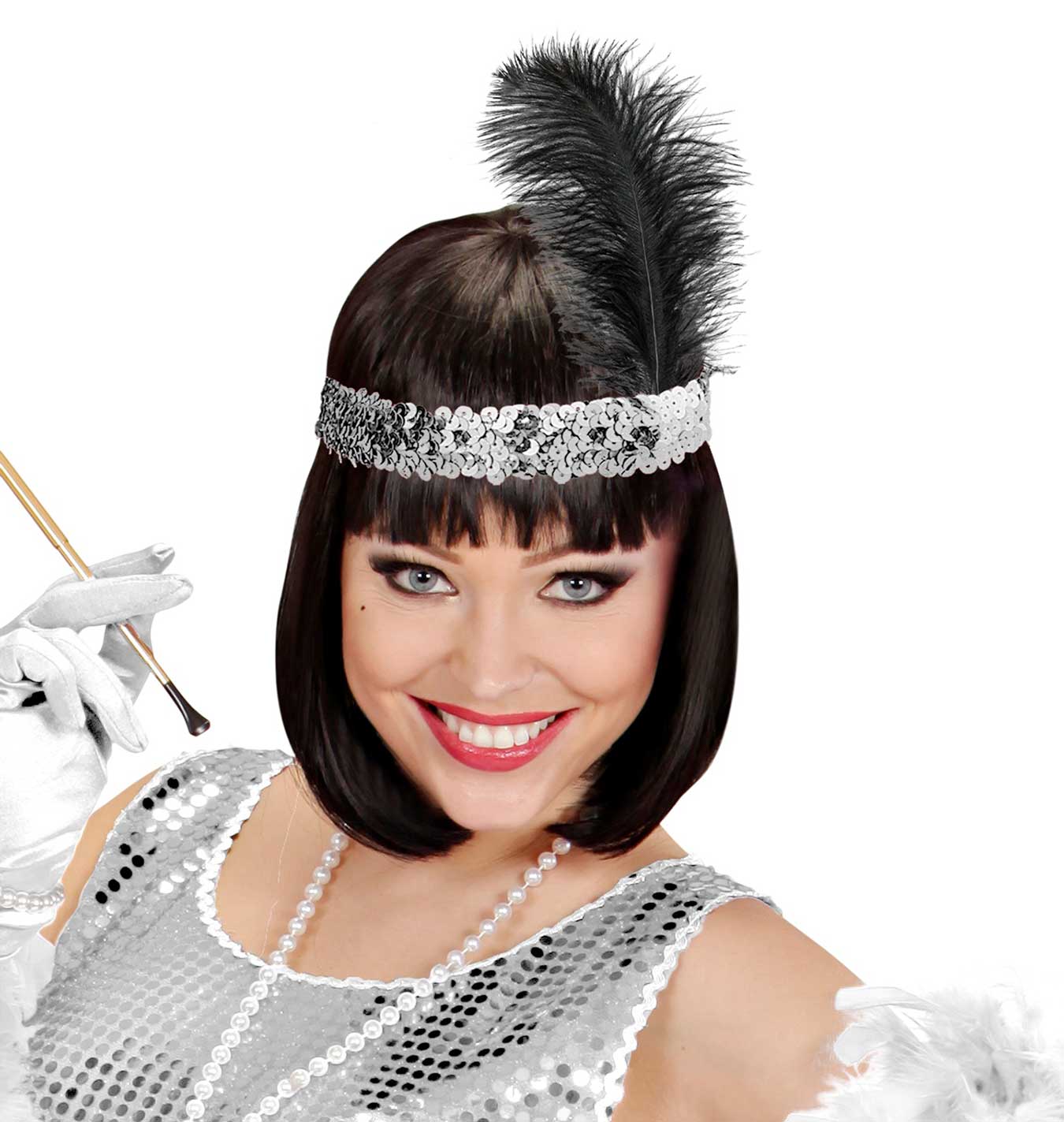 Διάδημα Τσάρλεστον με Ασημί Πούλιες και Μαύρο Φτερό
