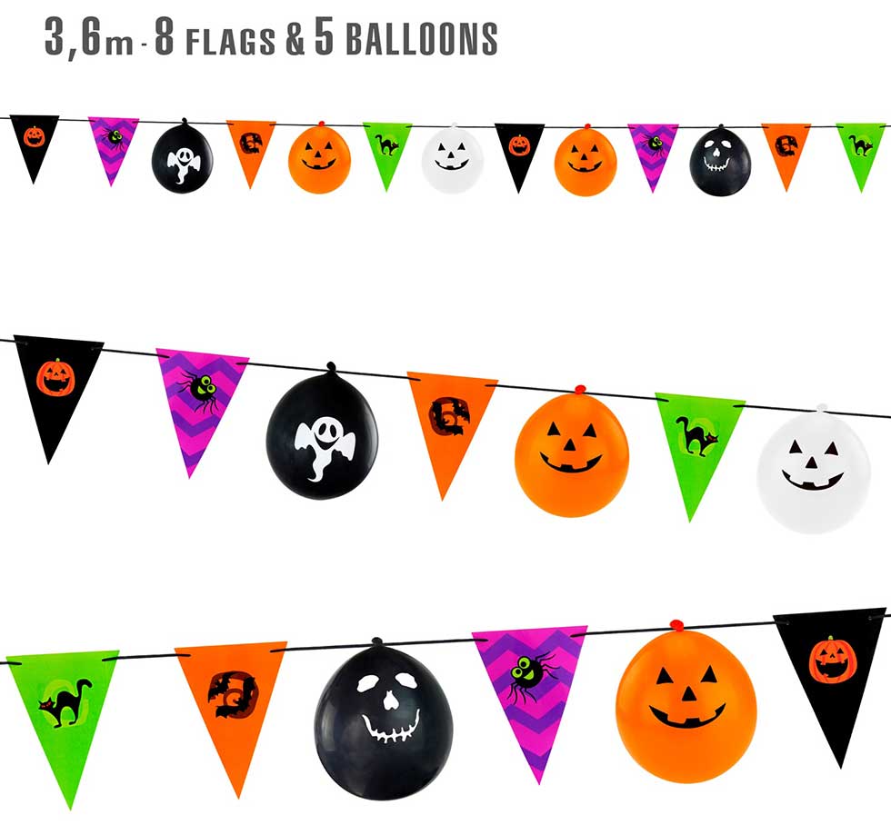 Διακοσμητική Γιρλάντα Halloween με Σημαιάκια και Μπαλόνια 3.6m
