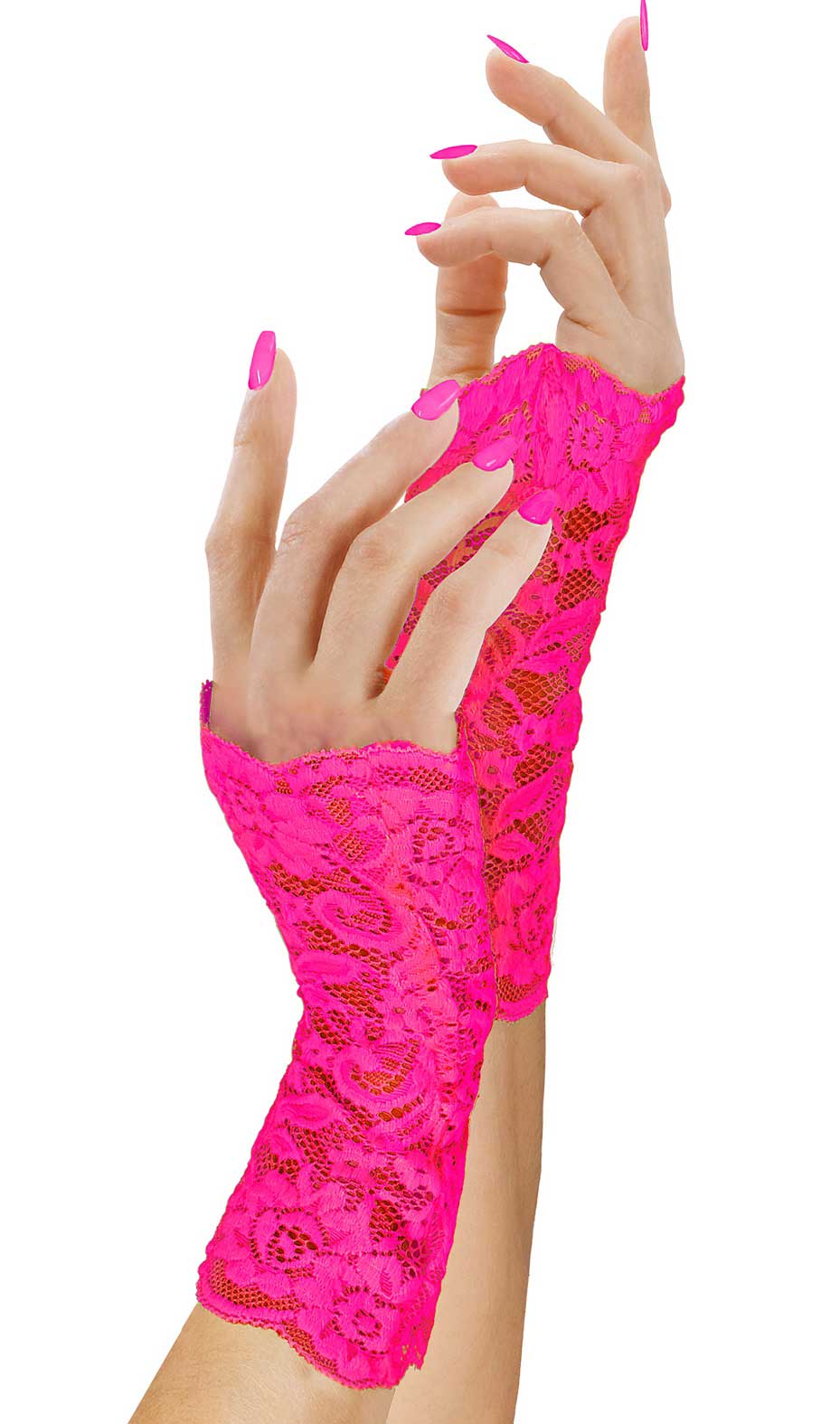 Αποκριάτικα Γάντια Δαντέλα Ροζ Neon χωρίς Δάχτυλα