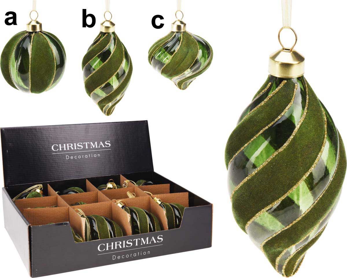 Χριστουγεννιάτικη Γυάλινη Μπάλα Στολίδι Πράσινο με Βελούδο