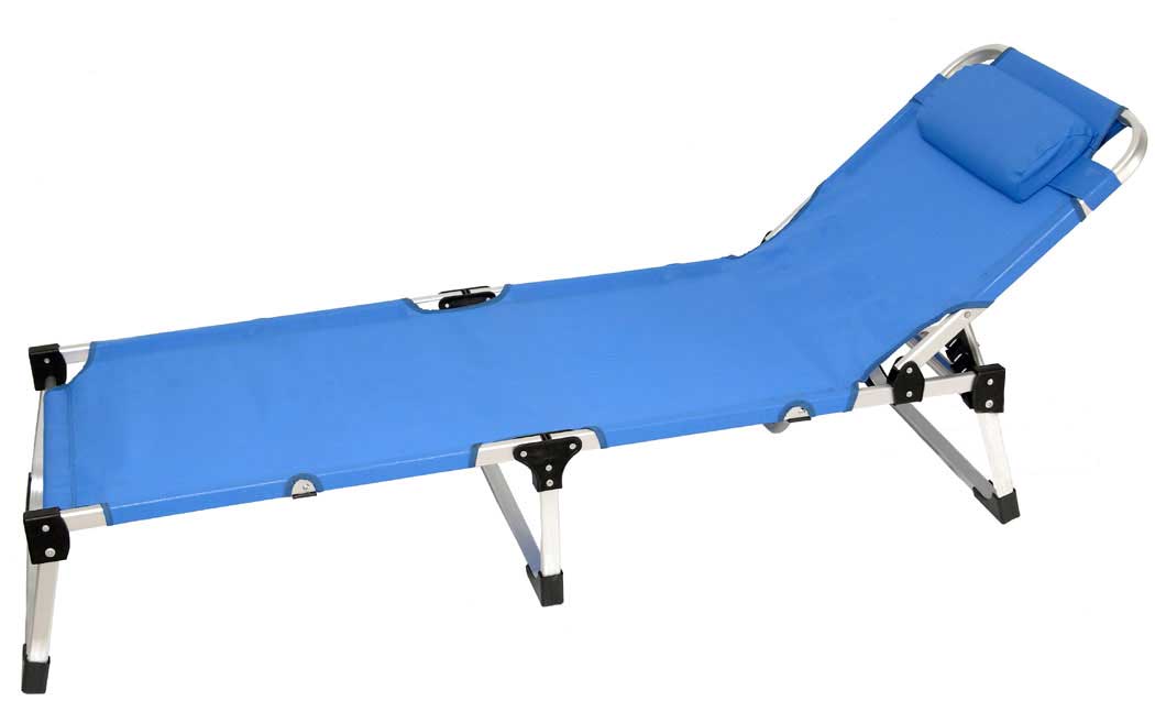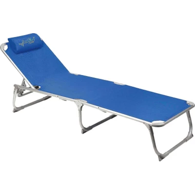 Ξαπλώστρα παραλίας αναδιπλούμενη με ενισχυμένο σκελετό αλουμινίου και αποσπώμενο μαξιλάρι στην πλάτη.