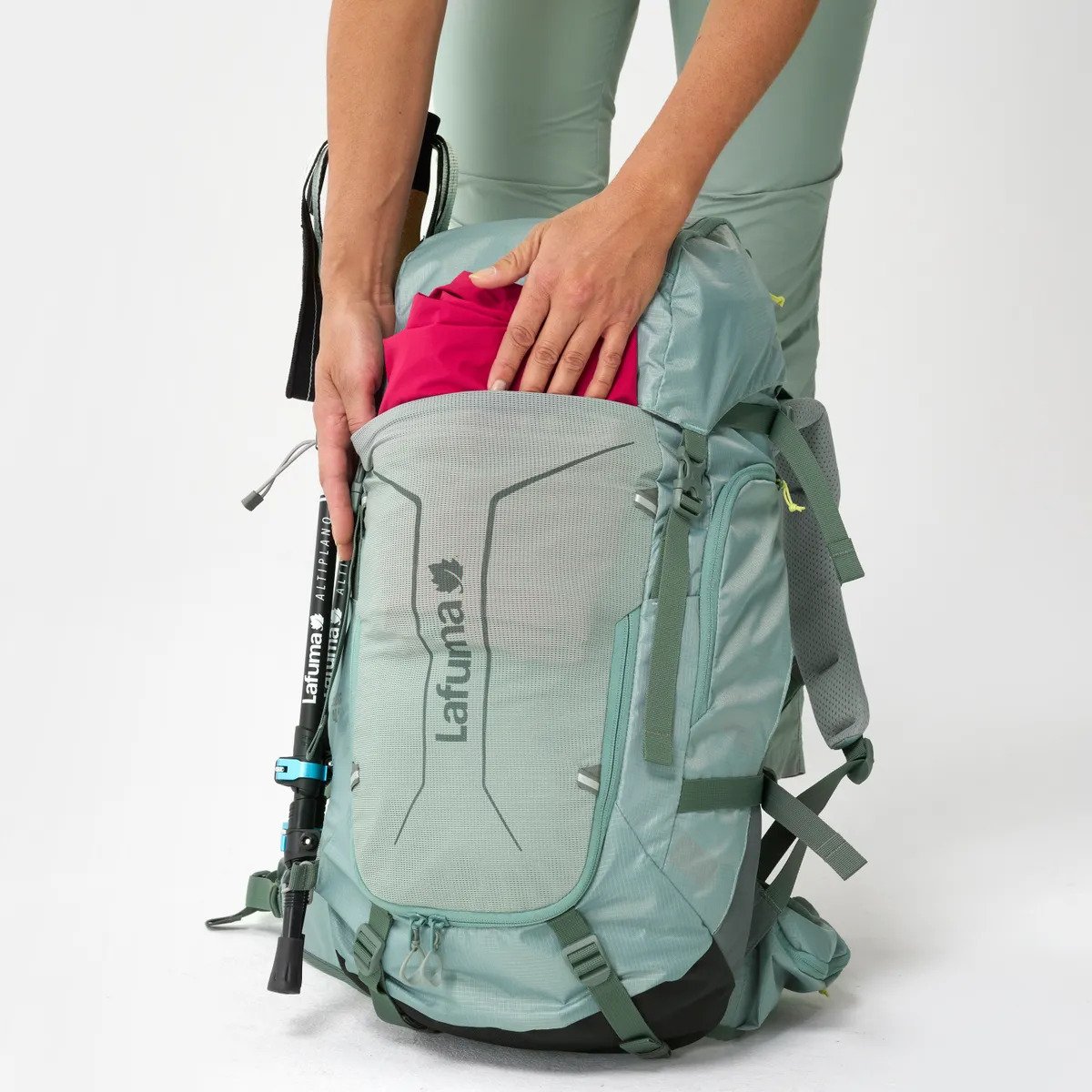 Αν είστε γυναίκα και πρέπει να έχετε μόνο ένα σακίδιο... αυτό πρέπει να είναι το ACCESS 40 W. Θα σας ικανοποιήσει τόσο σε ημερήσιες πεζοπορίες όσο και σε ορειβατικές περιπέτειες 2-3 ημερών (με υπνόσακο και σκηνή). Είναι εξίσου κατάλληλο τόσο για μια πεζοπορία στον Ενιπέα στους πρόποδες του Όλυμπου, όσο και για μια ανάβαση μερικών ημερών στον Μύτικα. Είναι πολύ αποτελεσματικό και έχει μοντέρνα εμφάνιση χάρις το νέο ύφασμα κηρήθρας (honeycomb) το οποίο έχει ωραία αίσθηση και τραβά τα βλέμματα! Αυτό το μοντέλο ξεχειλίζει από τεχνολογικές λεπτομέρειες, όπως ιμάντες ρύθμισης φορτίου στο πίσω μέρος για να το συμπιέζουν εύκολα, ένα άνοιγμα στη βάση για πρόσβαση στο μπουφάν σας σε περίπτωση ξαφνικής νεροποντής, και ιμάντες για τη μεταφορά υπνόσακου ή σκηνής. Η μπροστινή διχτυωτή τσέπη είναι ιδιαίτερα βολική, επιτρέποντάς σας να αποθηκεύετε και να έχετε εύκολη πρόσβαση σε έναν χάρτη, σε γάντια ή σε έναν σκούφο.