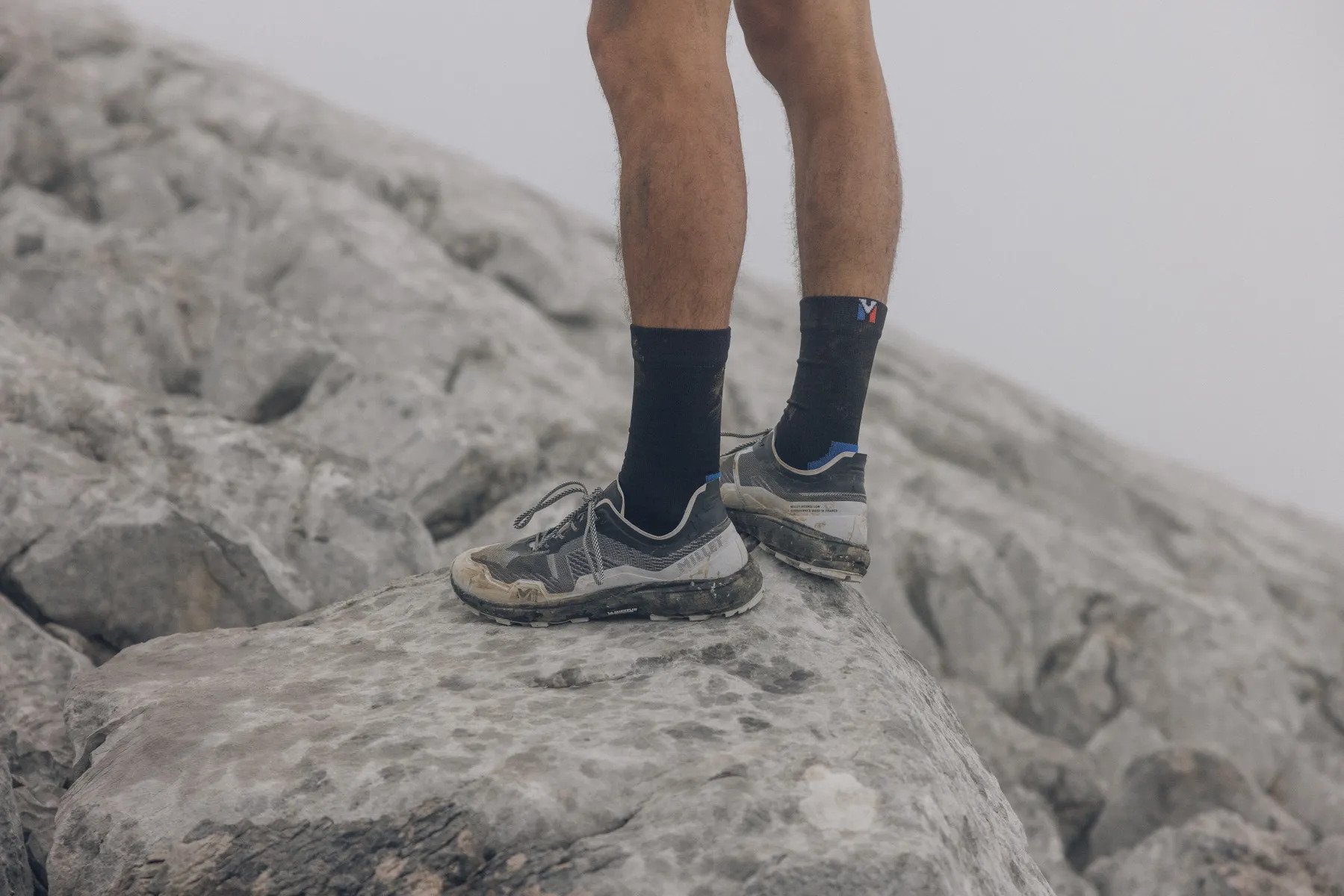 Ανεβείτε άνετα στις ψηλότερες κορυφές, τρέξτε στα μονοπάτια με ευκολία, με τις trail running κάλτσες TRILOGY SKY. Διατηρούνται στη θέση τους χάρη σε μια λωρίδα σιλικόνης στη περίμετρο της γάμπας, ενώ το ύψος τους παρέχει επιπλέον προστασία από το κρύο και τους τραυματισμούς από γρατσουνιές. Η ανατομική τους κατασκευή δεξιά/αριστερά και οι ίνες NanoGLIDE® ενάντια της τριβής, αποτρέπουν τις φουσκάλες και το δυσάρεστο "κάψιμο" από το τρίψιμο. Η παχύτερη περιοχή στο πέλμα προσφέρει την απαραίτητη απορρόφηση κραδασμών, η οποία θα είναι ευπρόσδεκτη κατά τη διάρκεια της επίπονης προσπάθειας για πολλές ώρες.