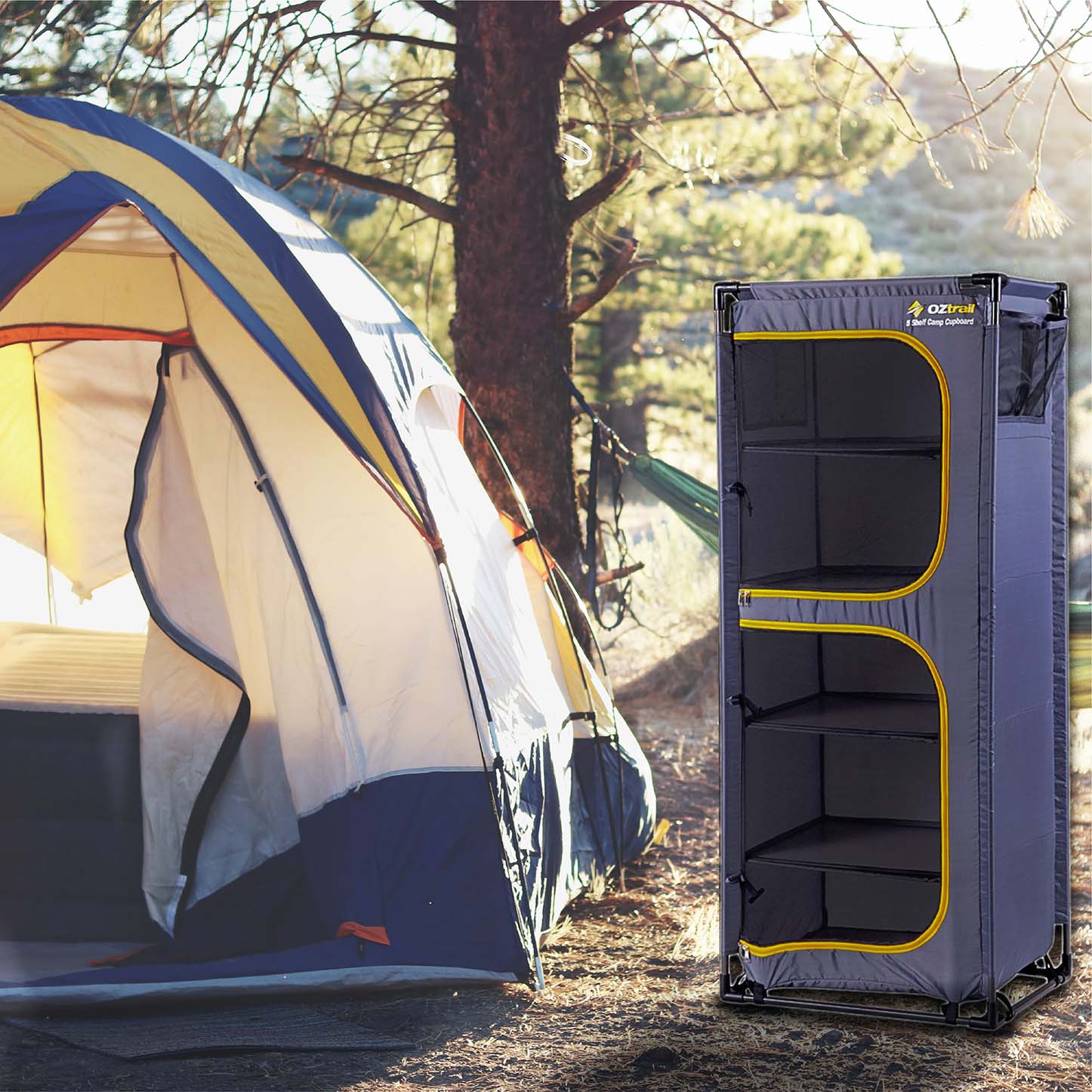 Πτυσσόμενη πρακτική ραφιέρα με 5 ( πέντε ) θέσεις αποθήκευσης από την Oztrail. Ισχυρός σιδερένιος σκελετός με αντοχή και ανθεκτικός Oxford πολυεστέρας. Αφαιρούμενα ράφια MDF καθώς και πρακτικές πλαϊνές θέσεις αποθήκευσης για επιπλέον χώρο αποθήκευσης μικρών αντικειμένων. Ελαφριά κατασκευή που μεταφέρεται εύκολα.