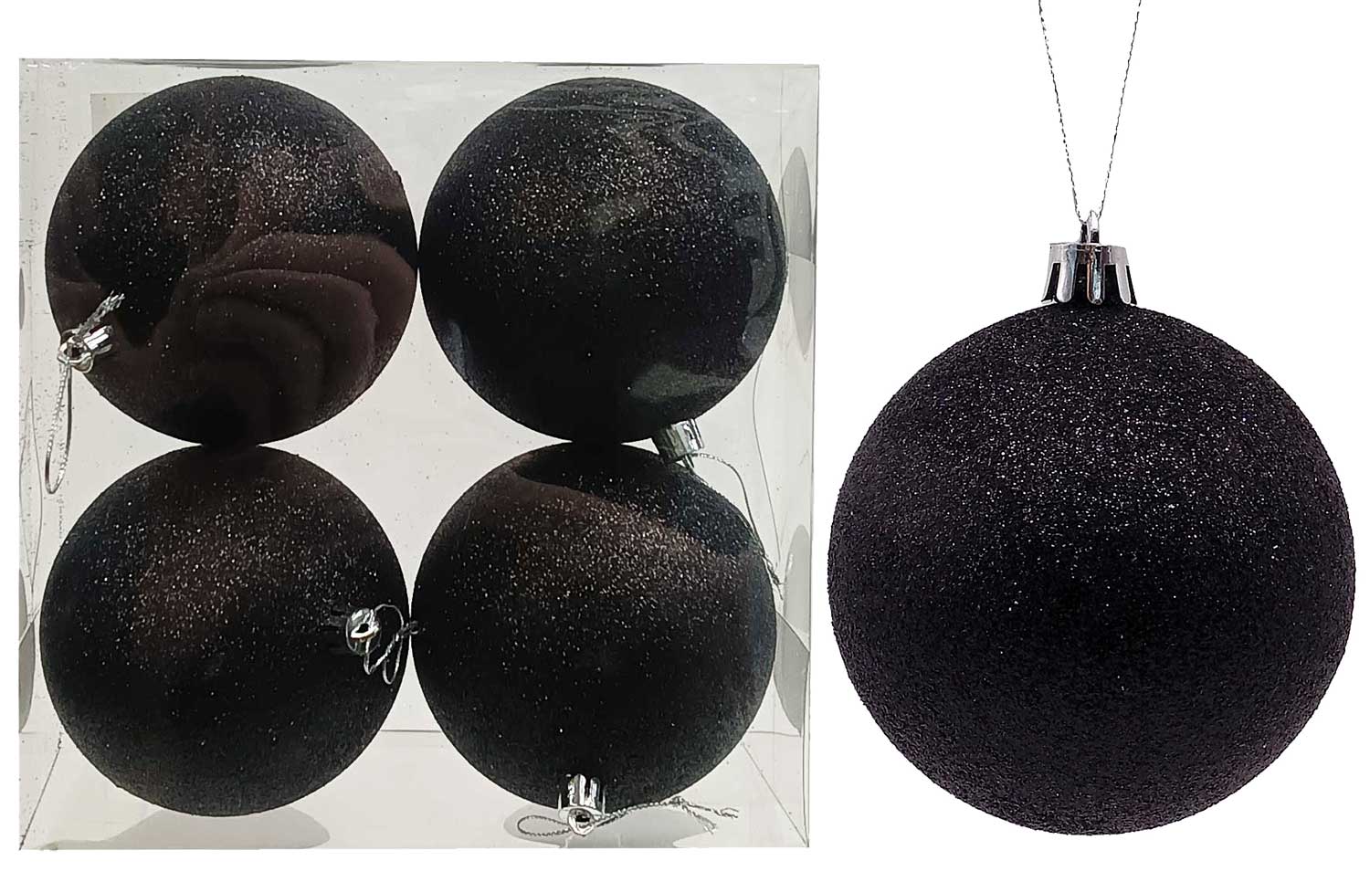 Σετ/4 τεμ. Χριστουγεννιάτικες Μπάλες Μαύρες με Glitter 10cm 237541