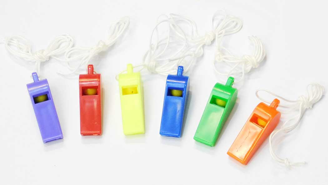 Αποκριάτικη πλαστική Σφυρίχτρα με Κορδόνι σε διάφορα χρώματα