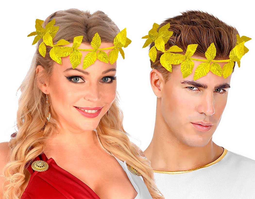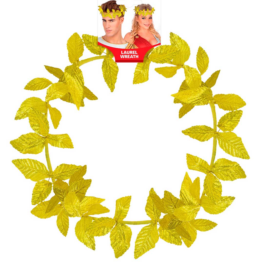 Αποκριάτικο Χρυσό Δάφνινο Στεφάνι 3282R - 317221 με τρία Χρυσά Φύλλα