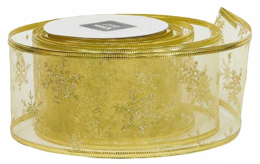 Χριστουγεννιάτικη Κορδέλα Χρυσή με τύπωμα 5.5m x 6cm 236315b