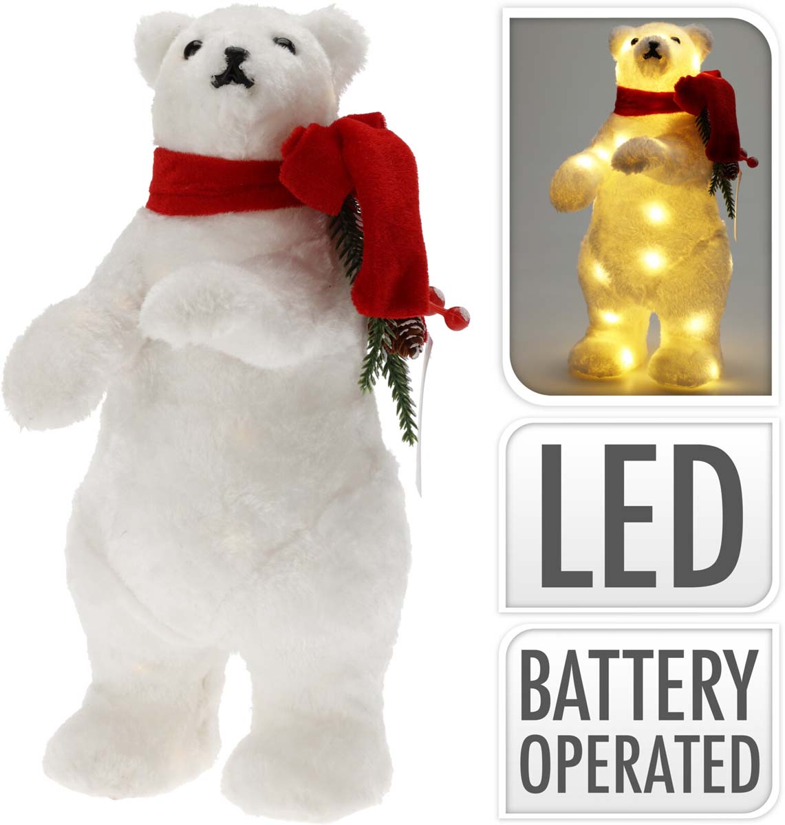 Χριστουγεννιάτικο Διακοσμητικός Αρκούδος Λευκός Φωτιζόμενος 20cm 603058