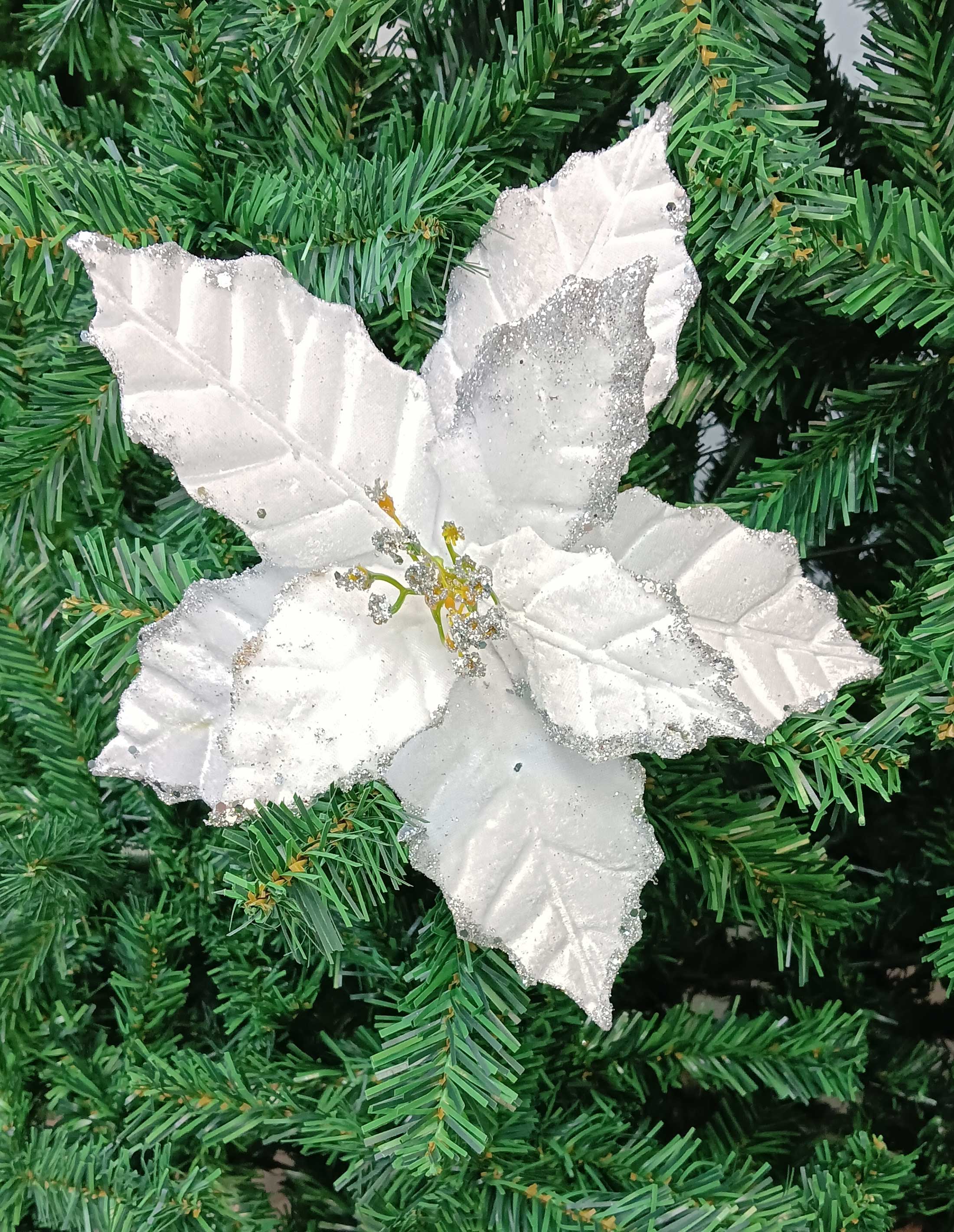 Χριστουγεννιάτικο Λουλούδι Άσπρο με Γκλίτερ 40cm