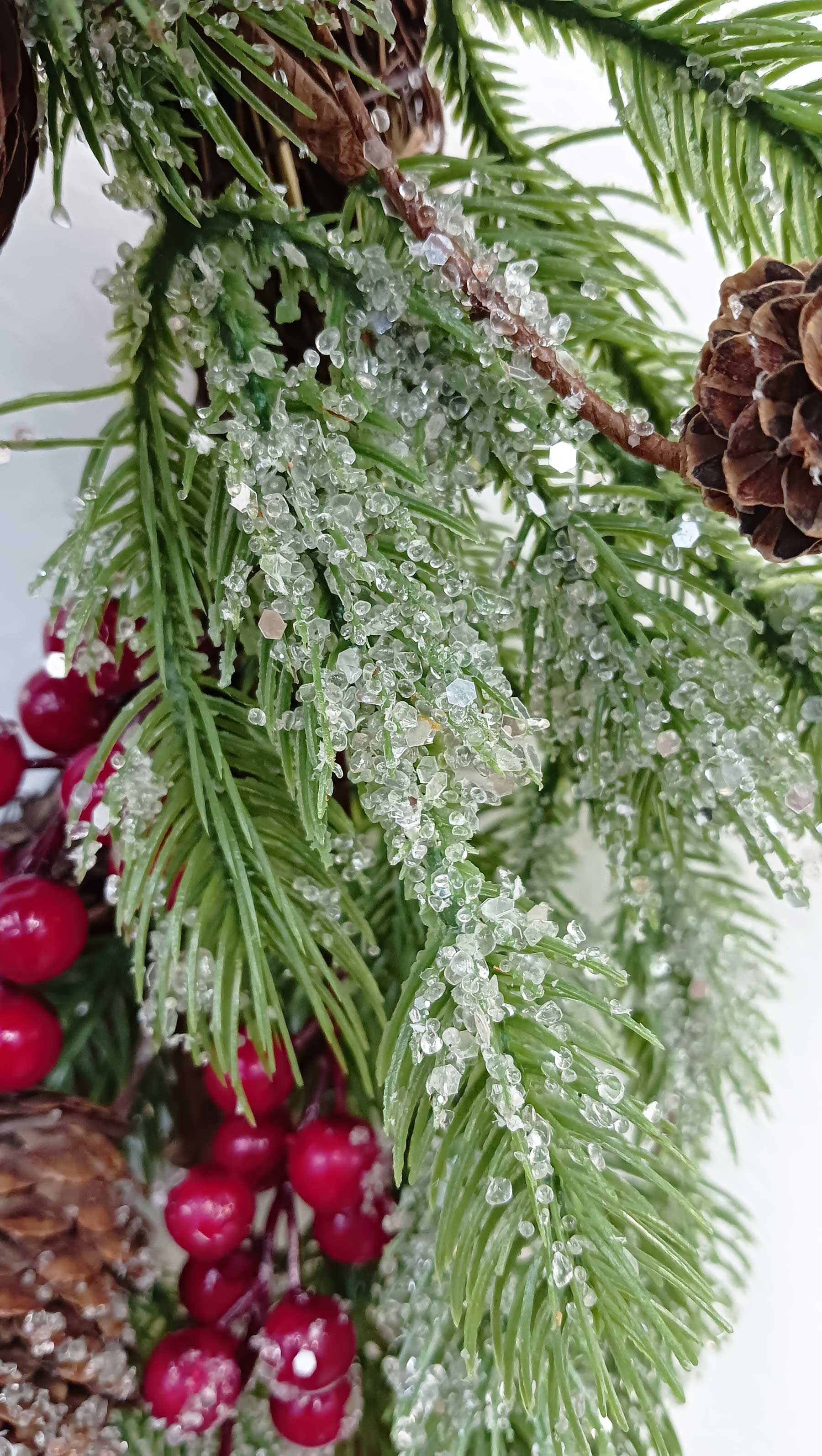 Χριστουγεννιάτικο Στεφάνι με Berries, Κουκουνάρια και Κρυστάλλους Πάγου.